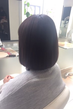 縮毛矯正のかかったボブスタイルをオージュアトリートメント、フィルメロウで柔らかいツヤ髪に☆