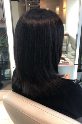 ちょうど肩に沿い動く毛先は、オージュアトリートメント、クエンチで水分バランスを整えしっとりツヤ髪に☆