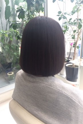 縮毛矯正のかかったボブスタイルをオージュアトリートメント、フィルメロウで柔らかいツヤ髪に☆